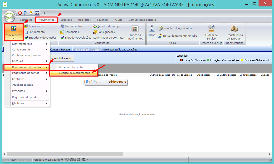 Procure no menu : Movimentos - > Movimentos - > Recebimento de contas - > Histórico de recebimento